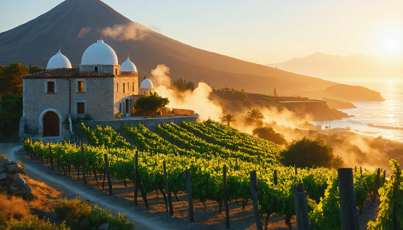 Entre la Sicile et la Tunisie, Pantelleria s’érige en mosaïque de caldeiras, vignobles et lacs thermaux. L’île fut proclamée « capitale du paysage agricole historique » par la FAO en 2022. Les vignes de zibibbo sont plantées dans des conques de pierre sèche pour résister au sirocco. Le Passito di Pantelleria, nectar ambré issu de ces grappes séchées, vient d’obtenir un label « Heritage Taste 2025 ».