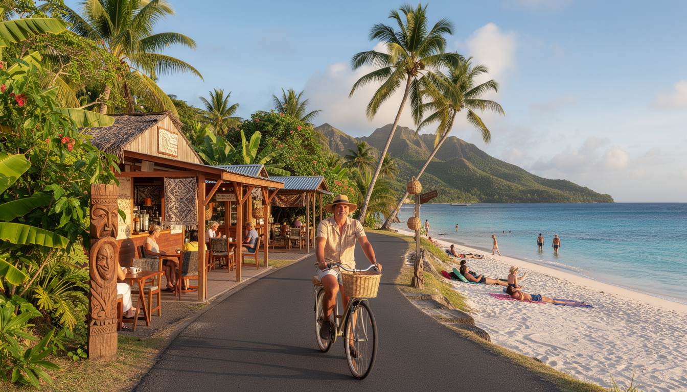 - Un tour de Rarotonga à vélo offre 32 km de paysages variés : lagons émeraude, champs de taro et montagnes couvertes de palmiers.